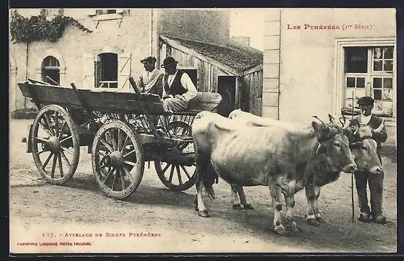 AK Les Pyrenees, Attelage de Boefs Pyreneens, Rindergespann