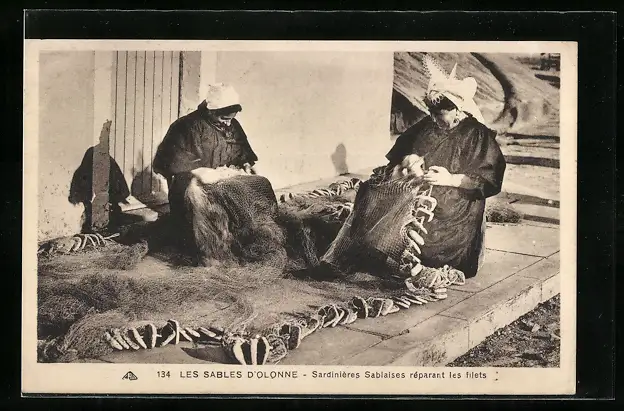 AK Les Sables D`Olonne, Sardinieres Sablaises reparant les filets