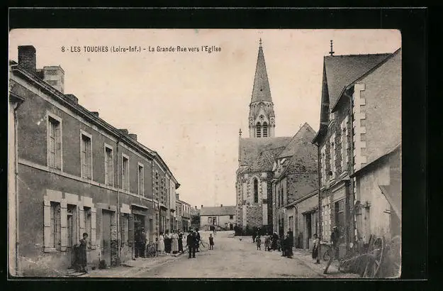AK Les Touches, La Grande-Rue vers l`Eglise