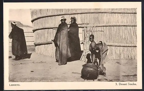 AK Lessouto, Devant l`enclos, Afrikaner vor einer Hütte