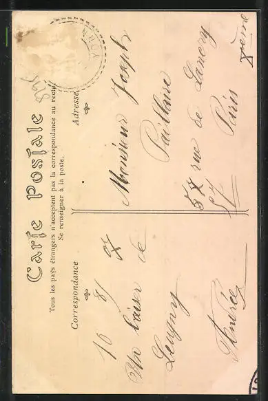 Personenbezogene Daten auf der Rückseite der Karte wurden durch blauen Textmarker unkenntlich gemacht. Die blauen Stellen sind auf die Vorderseite durchgeweicht und wirken sich negativ auf das Postkartenfoto aus