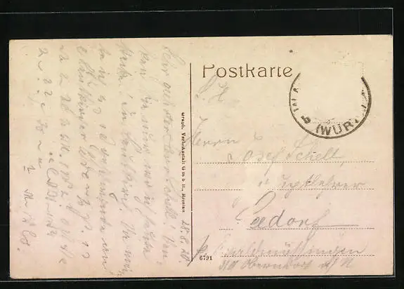 alte Ansichtskarte, gelaufen 1920, Briefmarke entfernt, rückseitig Oberflächenschaden, guter Zustand