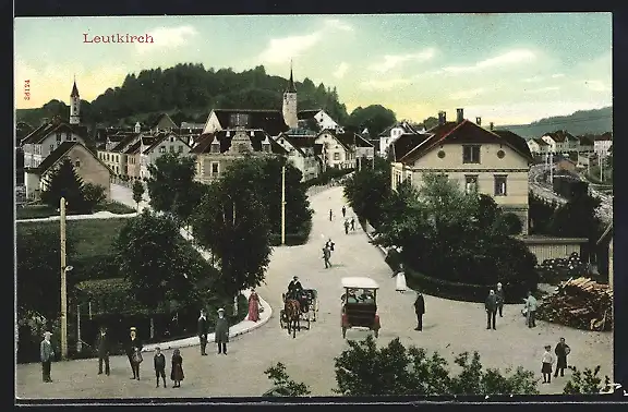 AK Leutkirch, Strassenpartie in der Ortschaft