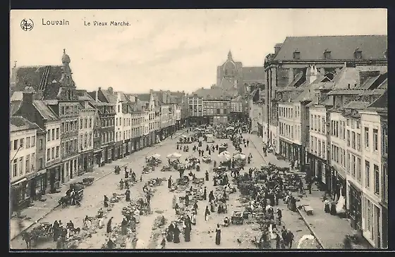 AK Leuven, De Oude Markt, viele Menschen
