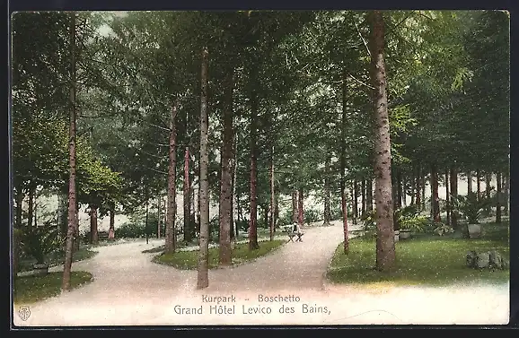 AK Levico, Boschetto, Grand Hôtel des Bains, Kurpark