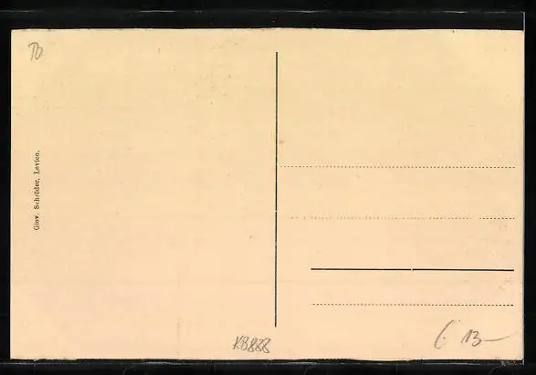 Personenbezogene Daten auf der Rückseite der Karte wurden durch blauen Textmarker unkenntlich gemacht. Die blauen Stellen sind auf die Vorderseite durchgeweicht und wirken sich negativ auf das Postkartenfoto aus