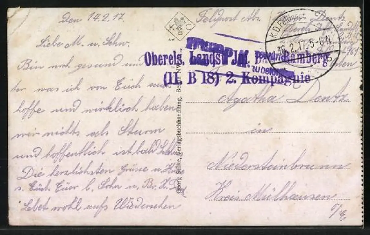 alte Ansichtskarte, gelaufen 1917, Eckknicke re., guter Zustand