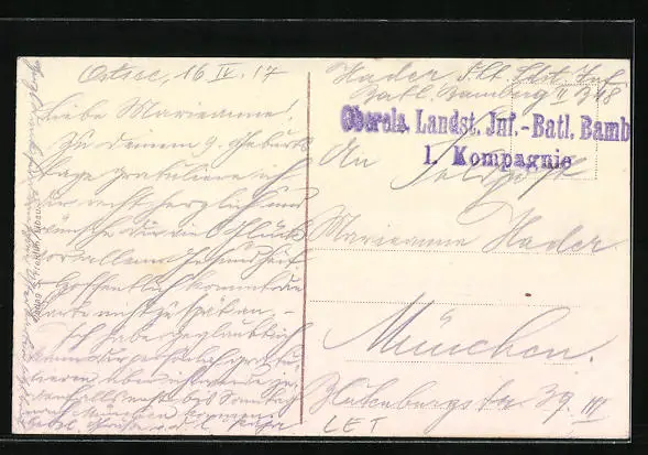 alte Ansichtskarte, gelaufen 1917 als Feldpost, guter Zustand