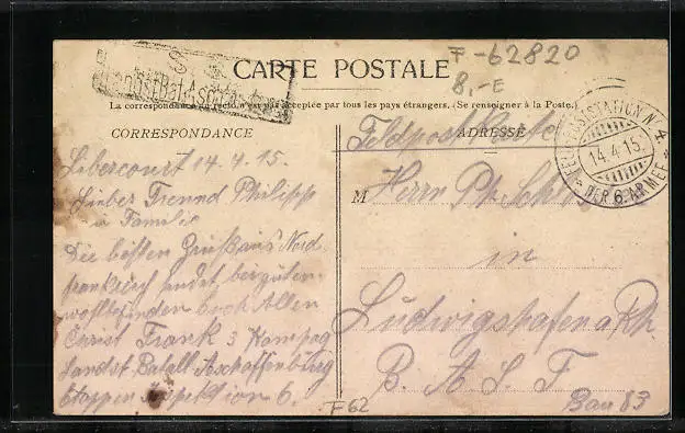 alte Ansichtskarte, gelaufen 1915 als Feldpost, Eckknick oben rechts, guter Zustand