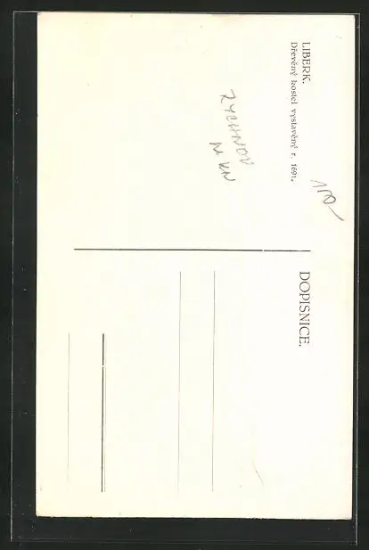 AK Liberk, Dreveny kostel vystaveny r. 1691
