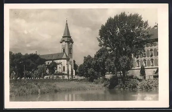 AK Libochovice / Libochowitz, Blick zur Kirche