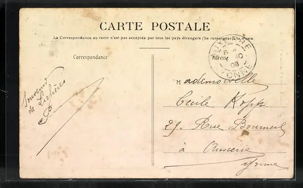 alte Ansichtskarte, gelaufen 1908, Briefmarke tw. entfernt, guter Zustand