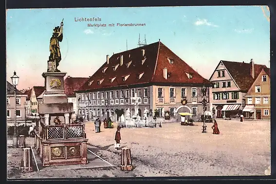 AK Lichtenfels / Main, Marktplatz mit Floriansbrunnen
