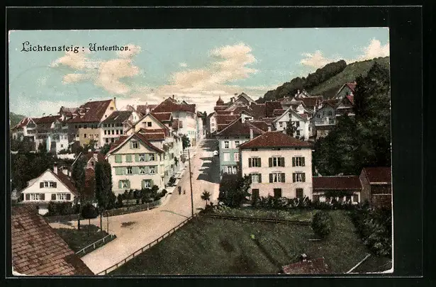 AK Lichtensteig, Unterthor mit Strassenpartie