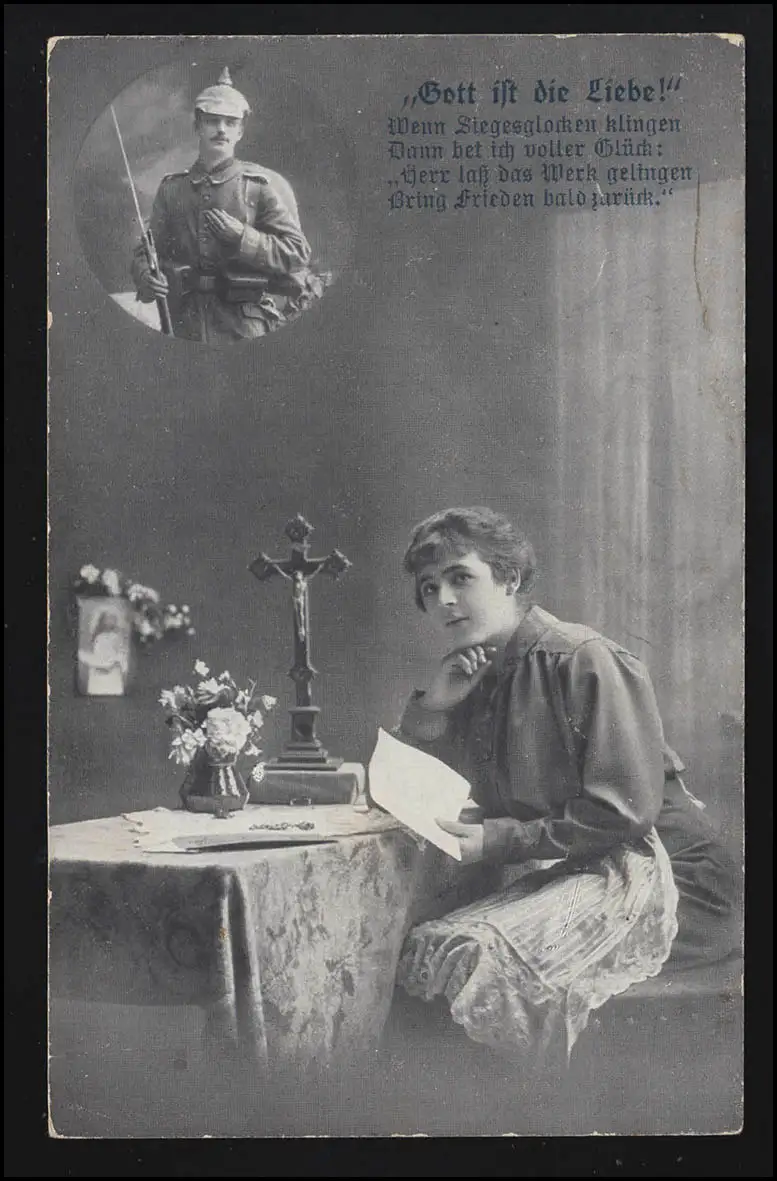 AK Liebe - Gott ist die Liebe! Brief von der Front, Feldpost PÜRGEN 3.6.1918