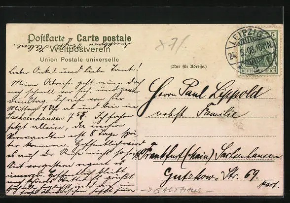 alte Ansichtskarte, gelaufen 1908, guter Zustand