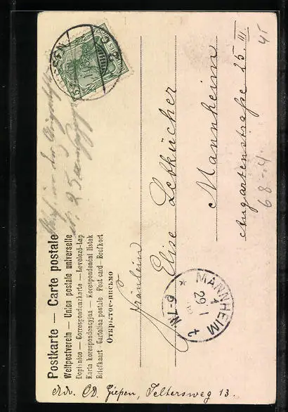 alte Ansichtskarte, gelaufen 1903, guter Zustand