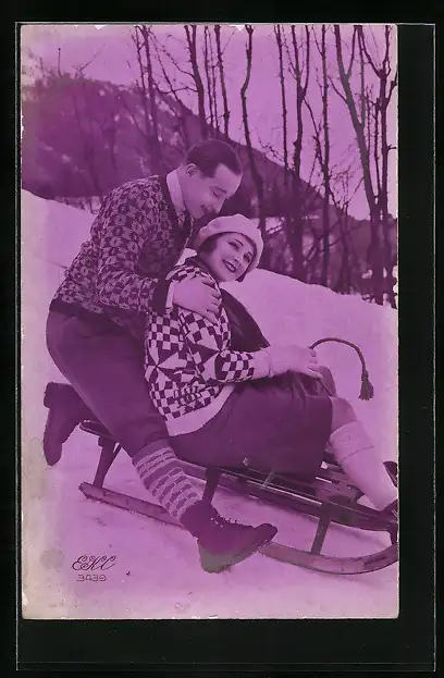 AK Liebespaar auf einem Schlitten