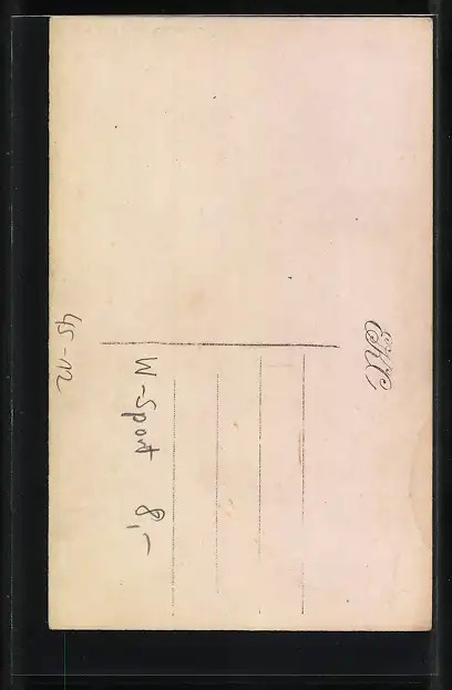 Personenbezogene Daten auf der Rückseite der Karte wurden durch blauen Textmarker unkenntlich gemacht. Die blauen Stellen sind auf die Vorderseite durchgeweicht und wirken sich negativ auf das Postkartenfoto aus
