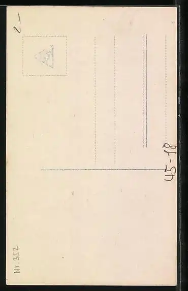 Personenbezogene Daten auf der Rückseite der Karte wurden durch blauen Textmarker unkenntlich gemacht. Die blauen Stellen sind auf die Vorderseite durchgeweicht und wirken sich negativ auf das Postkartenfoto aus