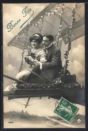 AK Liebespaar in einem Flugzeug