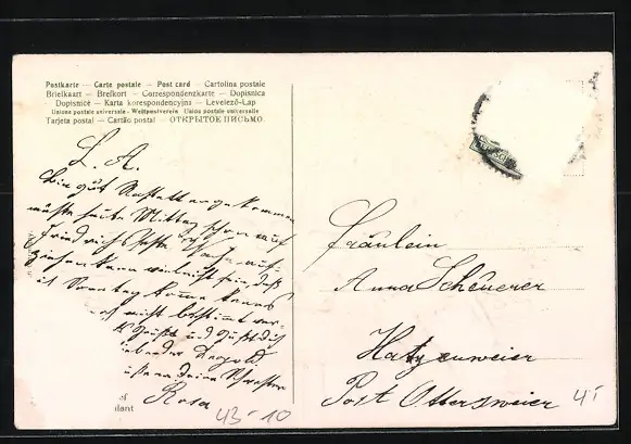 alte Ansichtskarte, gelaufen, Briefmarke entfernt, guter Zustand