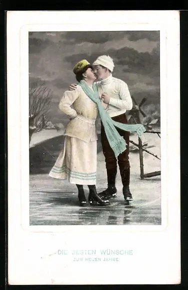 AK Liebespaar mit Schlittschuhen
