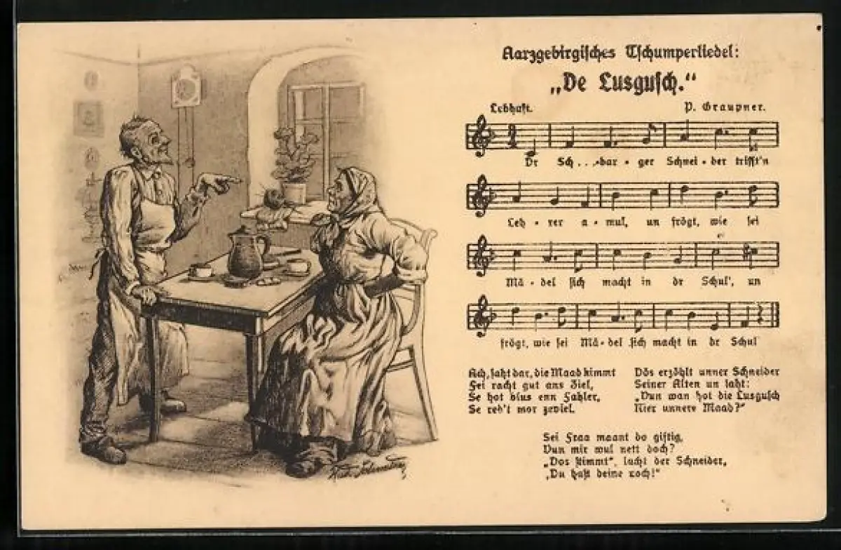 AK Lied De Lusgusch, altes Paar an einem Tisch