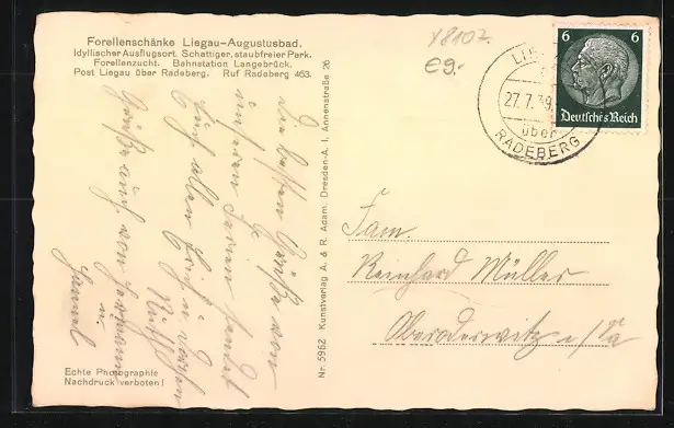 AK Liegau-Augustusbad, Gasthaus Forellenschänke