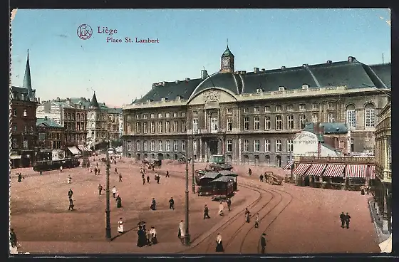 AK Liège, Place St. Lambert, tram, Strassenbahn