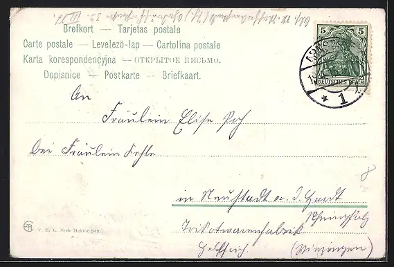 alte Ansichtskarte, gelaufen 1915, Eckknick oben re., guter Zustand
