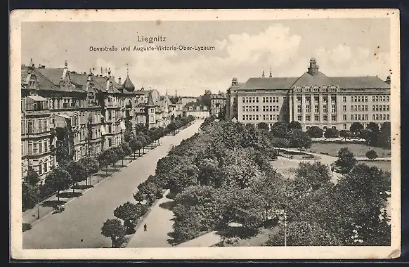 AK Liegnitz, Dovestrasse und Auguste-Viktoria-Ober-Lyzeum