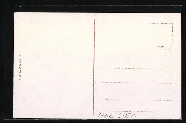 Personenbezogene Daten auf der Rückseite der Karte wurden durch blauen Textmarker unkenntlich gemacht. Die blauen Stellen sind auf die Vorderseite durchgeweicht und wirken sich negativ auf das Postkartenfoto aus