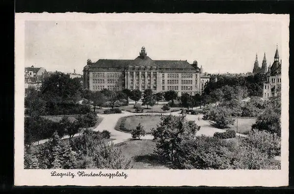 AK Liegnitz, Hindenburgplatz mit Bäumen
