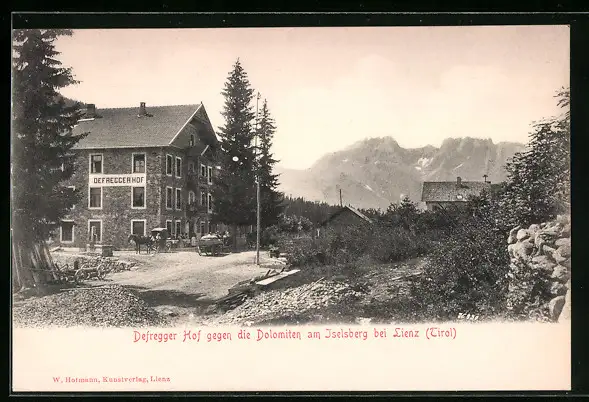 AK Lienz, Defregger Hof gegen die Dolomiten am Iselsberg