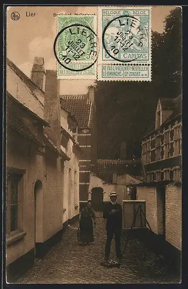 AK Lier, Maler steht mit seiner Staffelei in einer Gasse