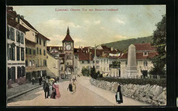AK Liestal, Oberes Tor mit Bauern-Denkmal