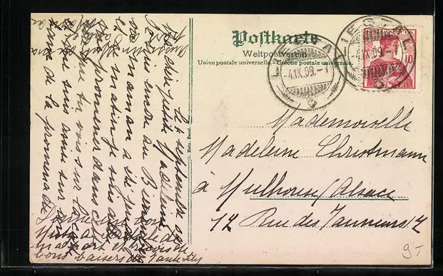 alte Ansichtskarte, gelaufen 1909, Eckknick unten rechts, guter Zustand