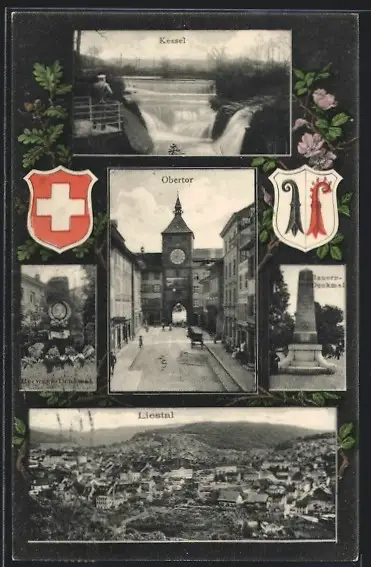 AK Liestal, Obertor, Bauerndenkmal, Wappen