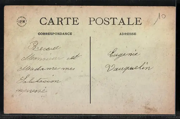 Personenbezogene Daten auf der Rückseite der Karte wurden durch blauen Textmarker unkenntlich gemacht. Die blauen Stellen sind auf die Vorderseite durchgeweicht und wirken sich negativ auf das Postkartenfoto aus