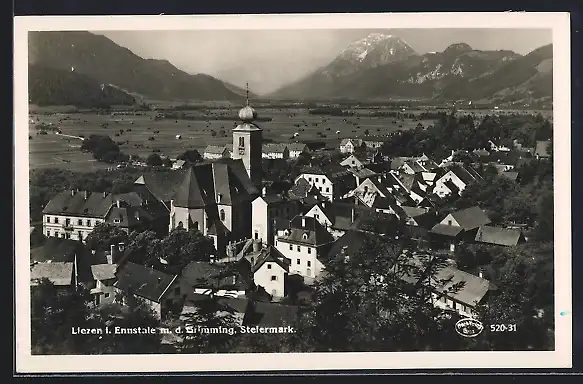 AK Liezen i. Ennstale, Teilansicht mit Kirche und dem Grimming