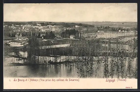 AK Ligugé, Le Bourg et l`Abbaye, Vue prise des collines de Smarves
