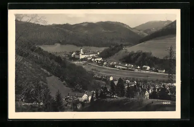 AK Lilienfeld, Ortsansicht mit Bahnhof aus der Vogelschau