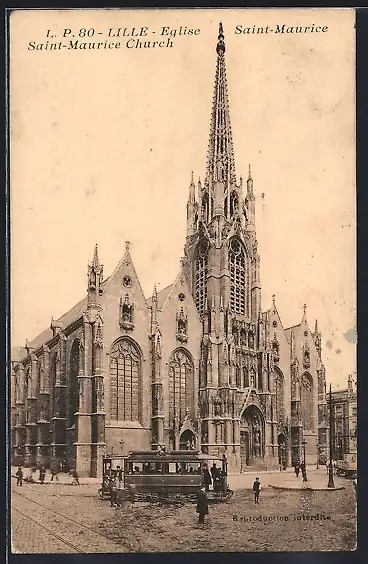 AK Lille, Eglise Saint-Maurice, Strassenbahn