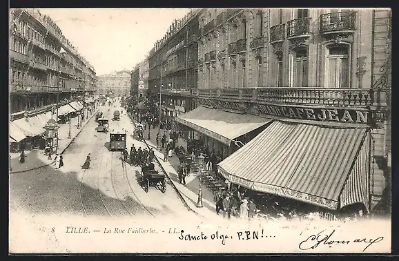 AK Lille, La Rue Faidherbe, Strassenbahn