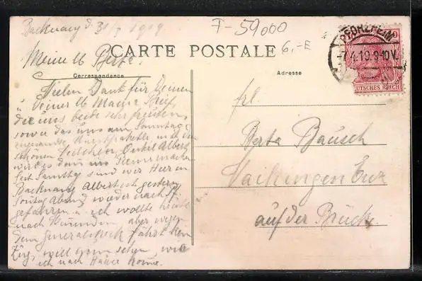 alte Ansichtskarte, gelaufen 1919, Briefmarke tw. entfernt, guter Zustand