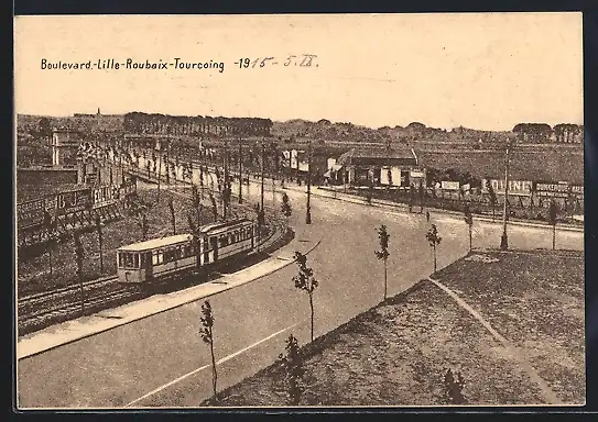 AK Lille, Strassenbahn, Boulevard-Lille-Roubaix-Tourcoing