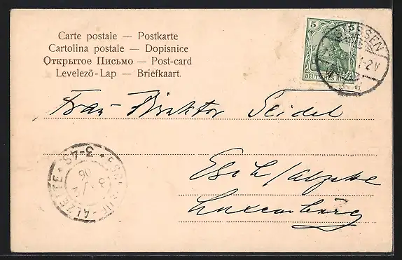 gelaufen 1906, Eckknicke li. oben u. re. unten, guter Zustand
