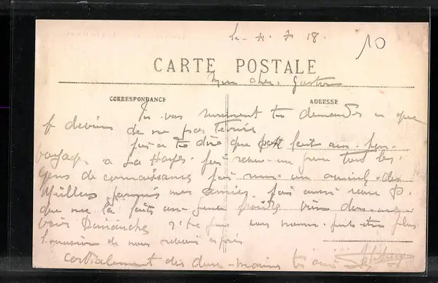 Personenbezogene Daten auf der Rückseite der Karte wurden durch blauen Textmarker unkenntlich gemacht. Die blauen Stellen sind auf die Vorderseite durchgeweicht und wirken sich negativ auf das Postkartenfoto aus