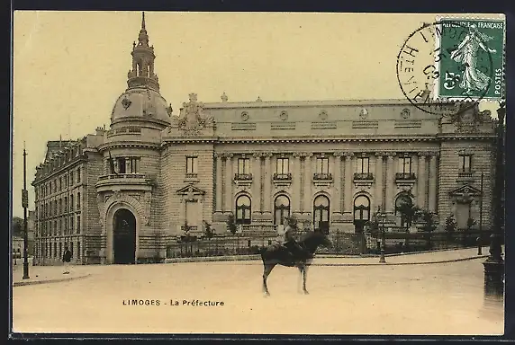 AK Limoges, La Préfecture avec un cavalier devant le bâtiment majestueux